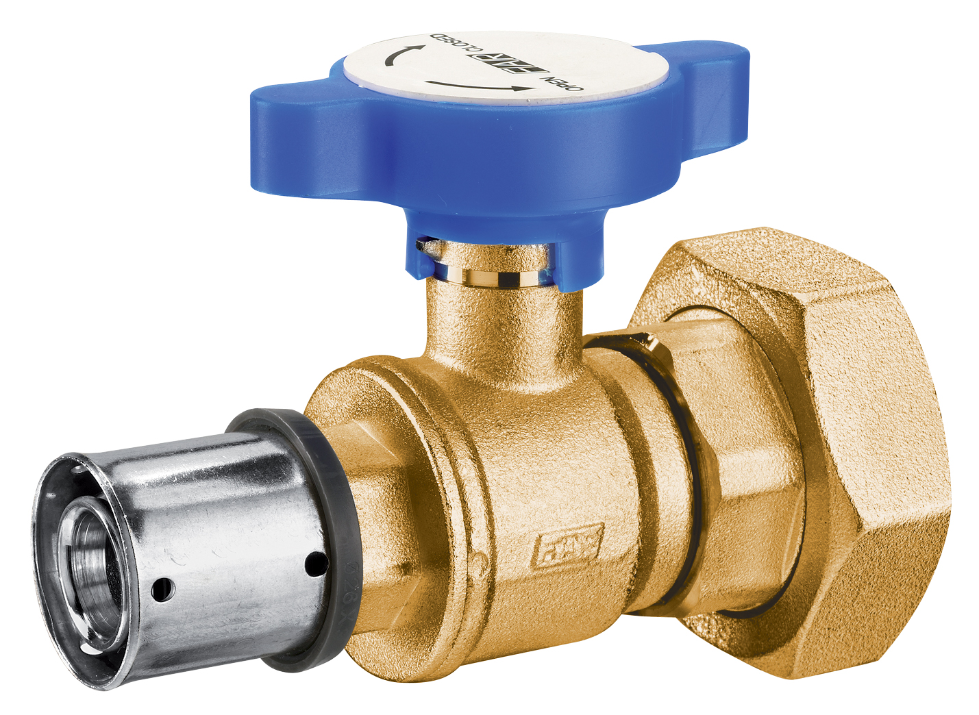 Кран шар. под термометр, латун.,1"1/2 (накидн.гайка-Ø26X3 PRESSF) син.ручка Кран шар. под термометр, латун.,1"1/2 (накидн.гайка-Ø26X3 PRESSF) син.ручка