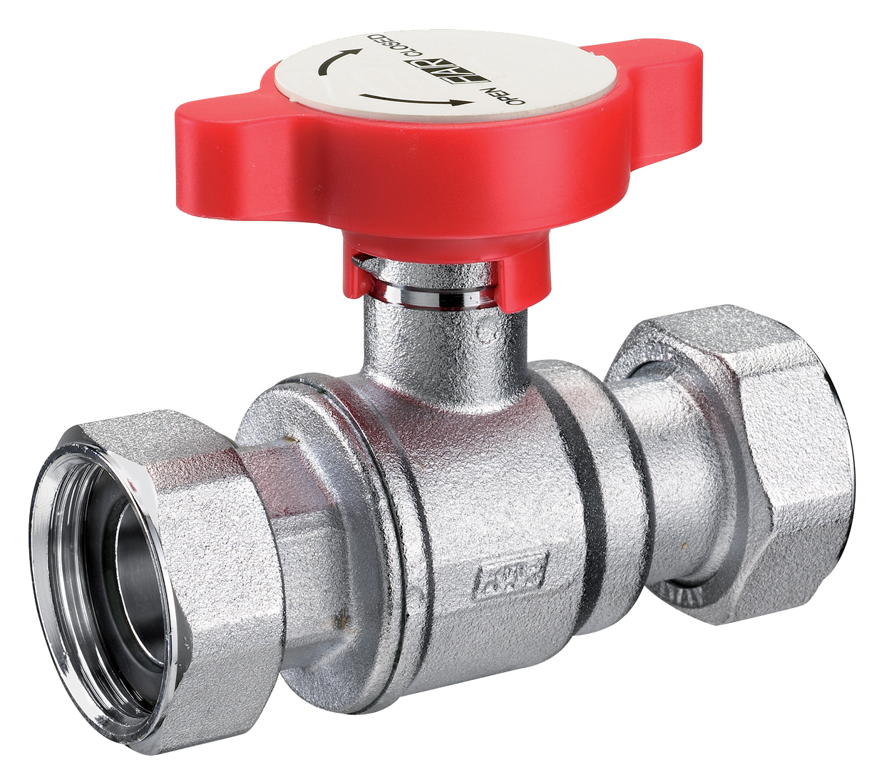 Кран шар., 1"х1 1/2", латунный, с накидн. гайкой, красная ручка Кран шар., 1"х1 1/2", латунный, с накидн. гайкой, красная ручка