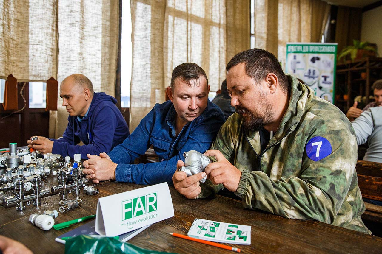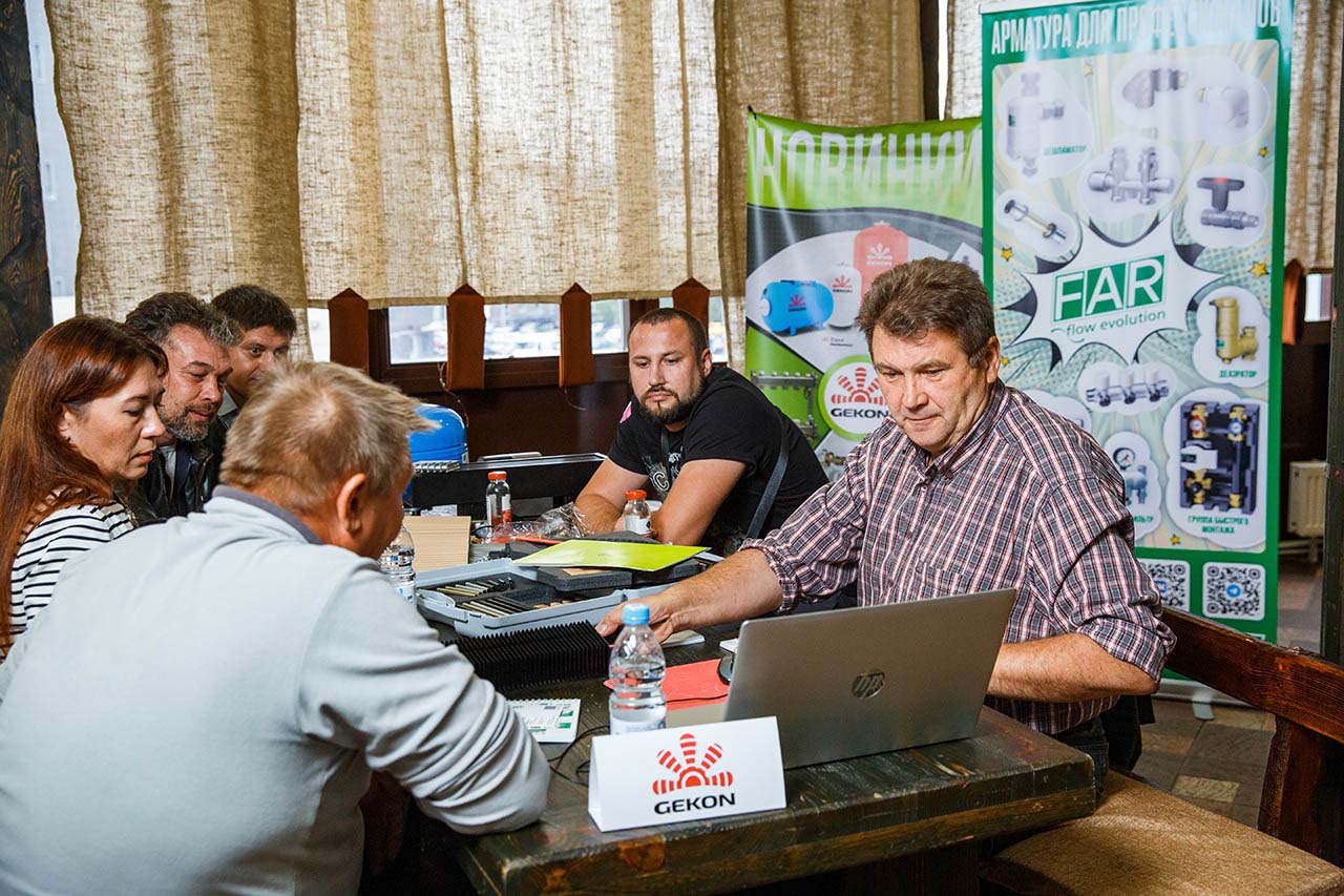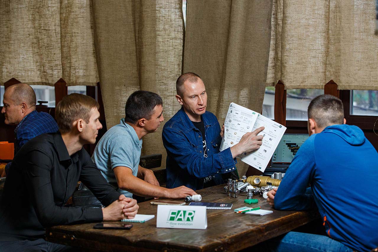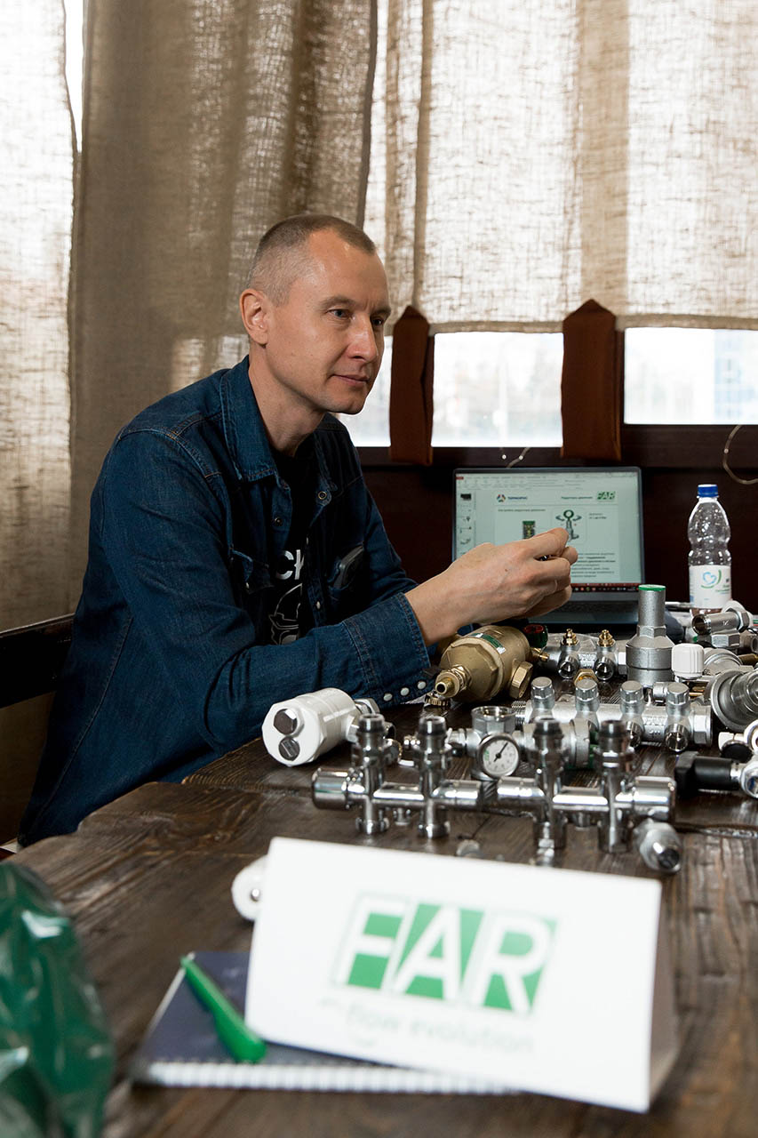 Ценной информацией о трубопроводной арматуре FAR делился на мероприятии Раушкин Иван, руководитель направления «Восток» в ГК «Терморос». Иван рассказывал и отвечал на вопросы участников о продукции FAR, уже зарекомендовавшей себя на рынке, а также представил новинки 2023 года: дешламаторы для настенных котлов, шаровые краны с высокой ручкой, редукторы давления с визуализацией настраиваемого давления и многими другими изделиями.