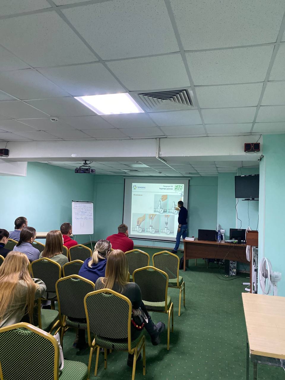 Семинар провёл Антон Гринченко, специалист по продажам ГК «Терморос». Антон детально разобрал работу смесительных узлов FAR и системы напольного отопления в целом, рассказал о новинках и уже давно зарекомендовавшей себя трубопроводной арматуре FAR.