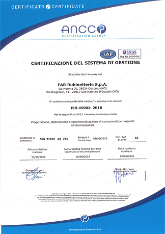 Благодаря постоянной заботе о качестве FAR получает сертификат UNI EN ISO 9001. Компания FAR до сих пор опирается на свои сильные стороны: качество, надежность и инновации, которые сделали ее одним из лидеров в инженерном секторе.